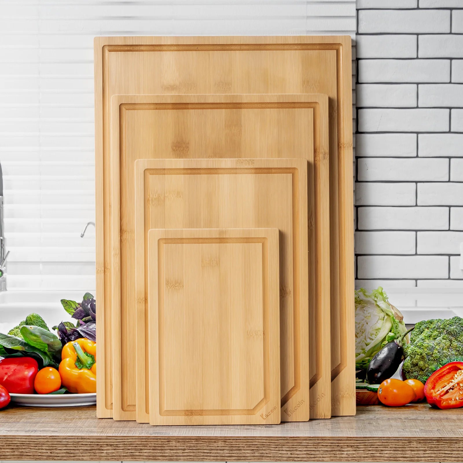 Elevate your culinary experience with our 4-piece Premium Bamboo Cutting Board Set. Made from heavy duty bamboo, these cutting boards feature a juice groove to prevent spills and a convenient inner handle design. Perfect for any chef looking for a touch of luxury in their kitchen.