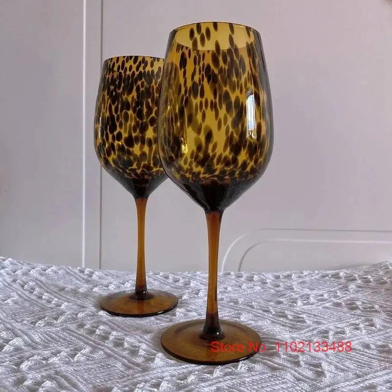 Unleash your wild side with this audacious amber leopard spot glass cup. A fearless fusion of medieval mystique and contemporary edge. Hand-crafted into an unconventional egg shape, this striking vessel defies ordinary drinkware conventions. Whether you're sipping wine with attitude, enjoying tea with flair, or raising a beer in bold celebration, this handmade goblet commands attention. The rich amber hue paired with leopard spotting creates an intoxicating visual statement that transforms every sip into an act of rebellion. Perfect for those who refuse to blend in.